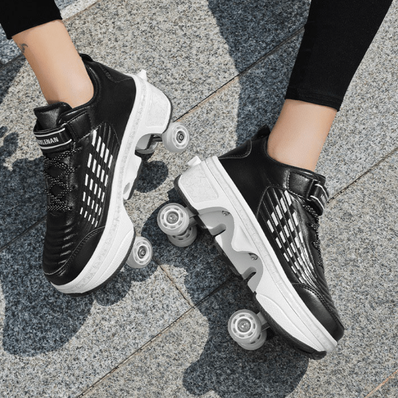 These 4 wheel roller shoes are built with premium PU leather, responsive EVA and a durable rubber sole. The upper is easy to wipe clean and the outsole grips reliably while you walk or roll. Sturdy hardware keeps the wheel mechanism smooth and consistent.